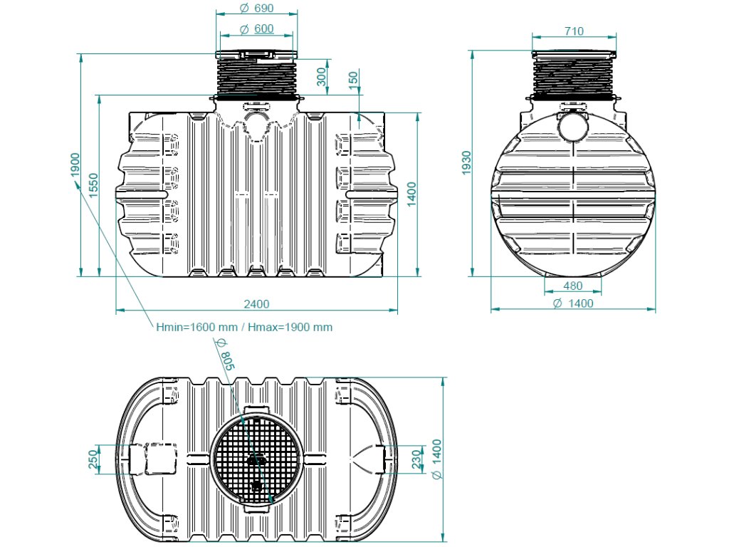 Nádrž na dešťovou vodu Roterra 3000 l je vyrobena z vysoce kvalitního polyetylenu o tloušťce 8 - 14 mm. Samonosná podzemní nádrž je osazena šroubovacím nástavcem s průměrem 600 mm a maximální výškou 500 mm, nástavec lze zkrátit. Součástí nádrže je plně pochozí víko s nosností 200 kg (0,2 kN/m3). Bez betonování je nádrž vhodná pouze pro pochozí provoz na plochách nad ní.