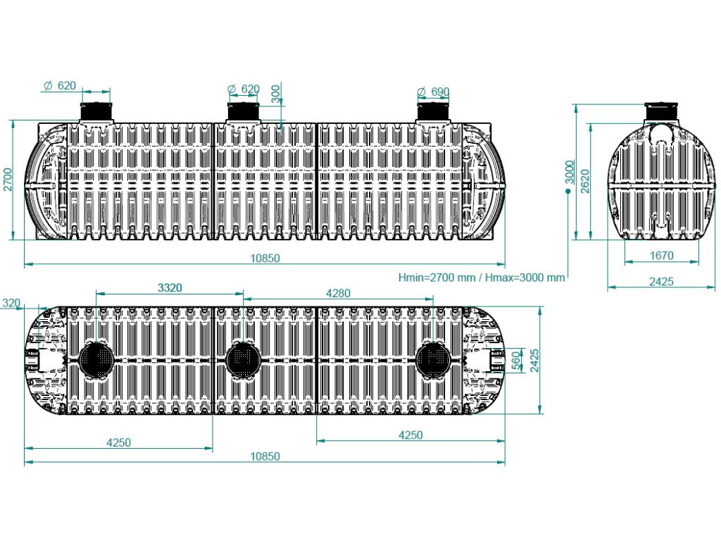 - větší plocha na připojení přítokového a odtokového potrubí (možný průměr až DN500)